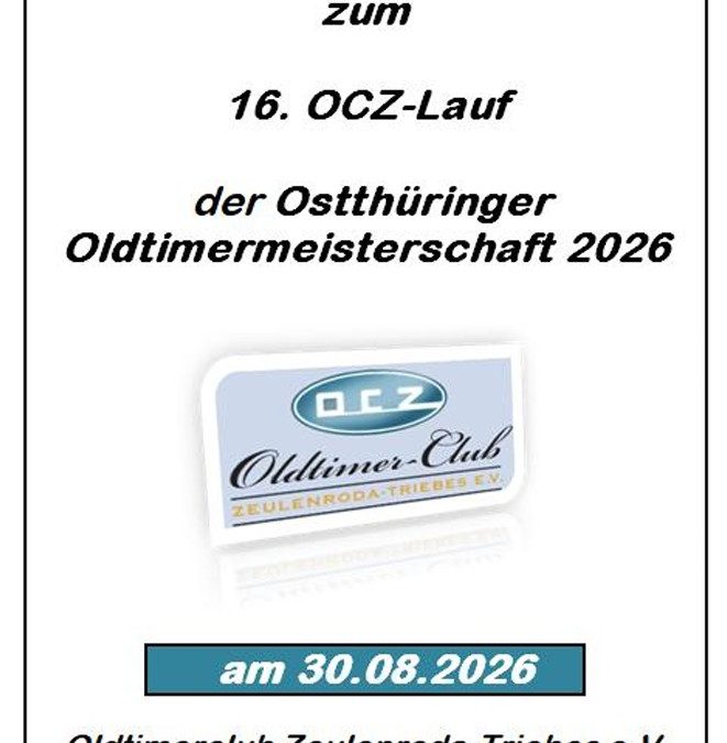 Am 30. August ist es wieder soweit. Der Oldtimerclub Zeulenroda-Triebes e.V. veranstaltet den 16. Lauf zur Ostthüringer Oldtimermeisterschaft 2026. Hier ist Ausschreibung für alle Fans, die gerne daran Teilnehmen möchten.